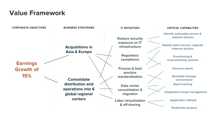 …Aligns and maps your product’s capabilities, operational benefits, and financial value with the company’s key strategic initiatives. This helps your enterprise-wide proposal compete for capital with all the other proposed initiatives, programs, and projects.