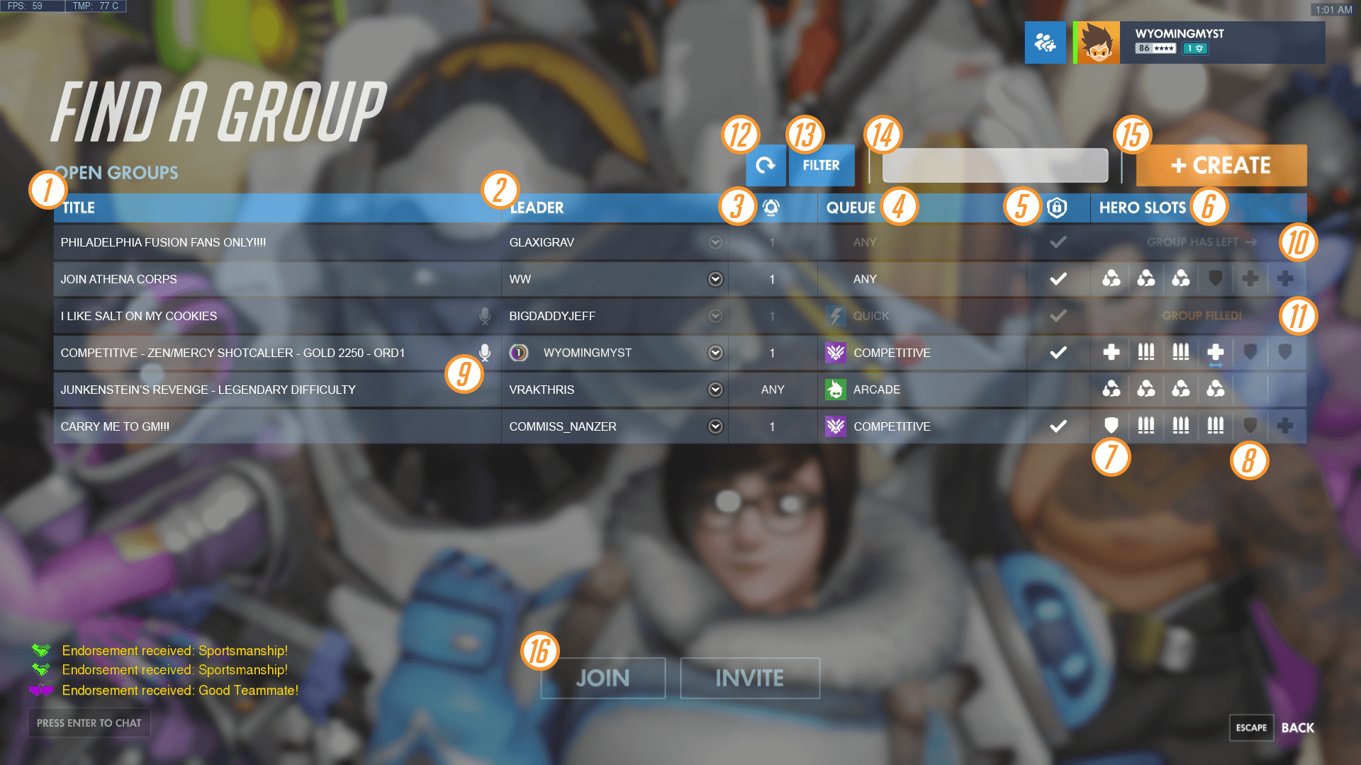 Most MMOs (massive multiplayer online games) have inherent network effects, meaning the games are more fun to play with more players. Yet MMOs often suffer from a “cold start” problem: In the beginning, there aren’t enough players to create a positive experience, leading to churn for new users. Cooperative play with friends is the best way to onboard and retain new users, but there can be many barriers along the way. For example, users may play at different times or on different platforms. Finding friends in-game can be an ordeal, thanks to opaque matchmaking rules and server restrictions. (See an example of a matchmaking lobby from Overwatch below.) And if you play less frequently than your friends, you may enter a game at a different level, rank, or location.