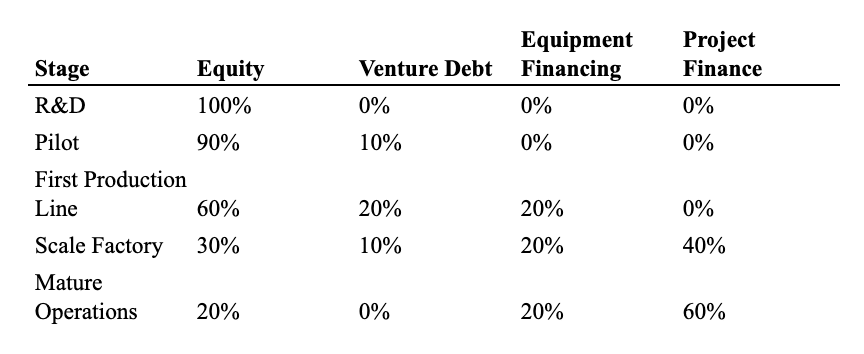 Factory-as-product companies require substantial capital, but not all capital is appropriate for all uses. The capital stack should be structured to match capital characteristics to funding needs.