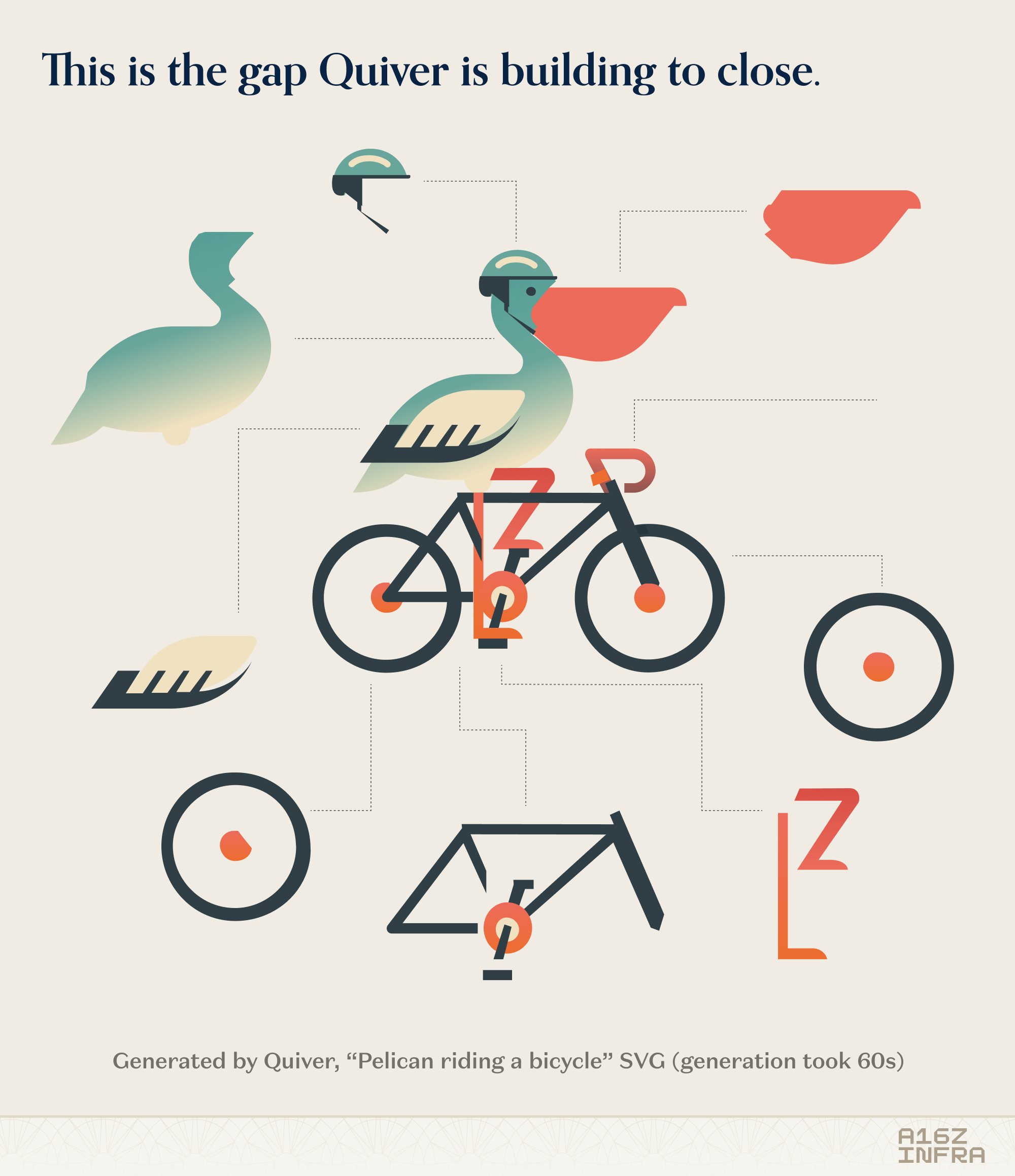 We believe Quiver’s work represents foundational infrastructure for how visual assets will be created in the future. Just as code generation required models that understood syntax and semantics, design generation will require models that treat visuals as structured systems. When vector graphics are treated as code, they become something models can reason about and modify directly. This makes generated visuals easier to refine, restyle, and reuse, opening the door to workflows that go far beyond one-off generation.