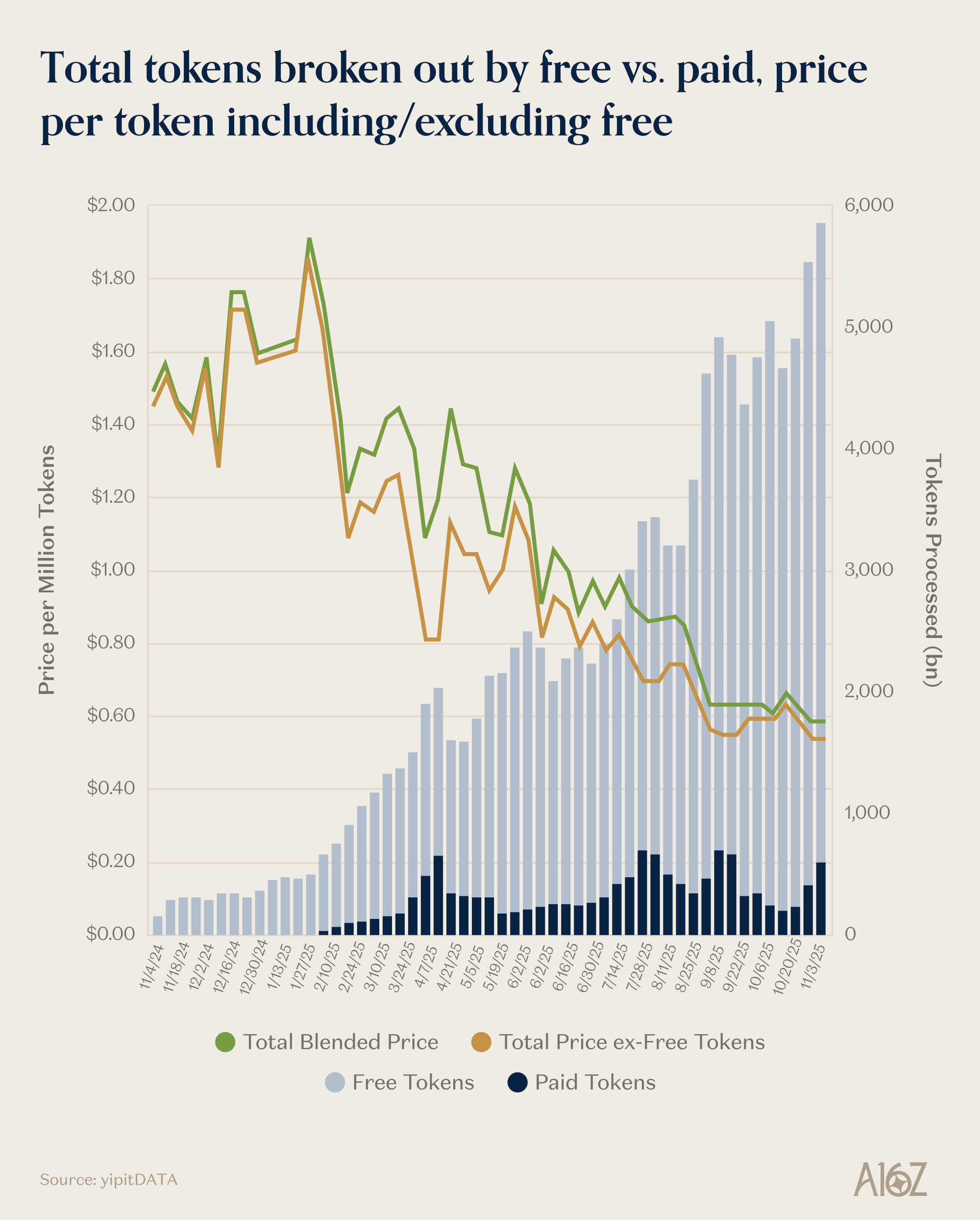 The extension of this is that AI gives us the opportunity to consume dramatically more of something – token consumption specifically, and agentic care services more broadly – and this matters a lot, for the purpose of getting this giant system to reorient itself in a new way. Agents are a new kind of service provider in health care of which we can consume an effectively unlimited amount, at tiny cost and huge volume, which is the opening you need to really transform a system.