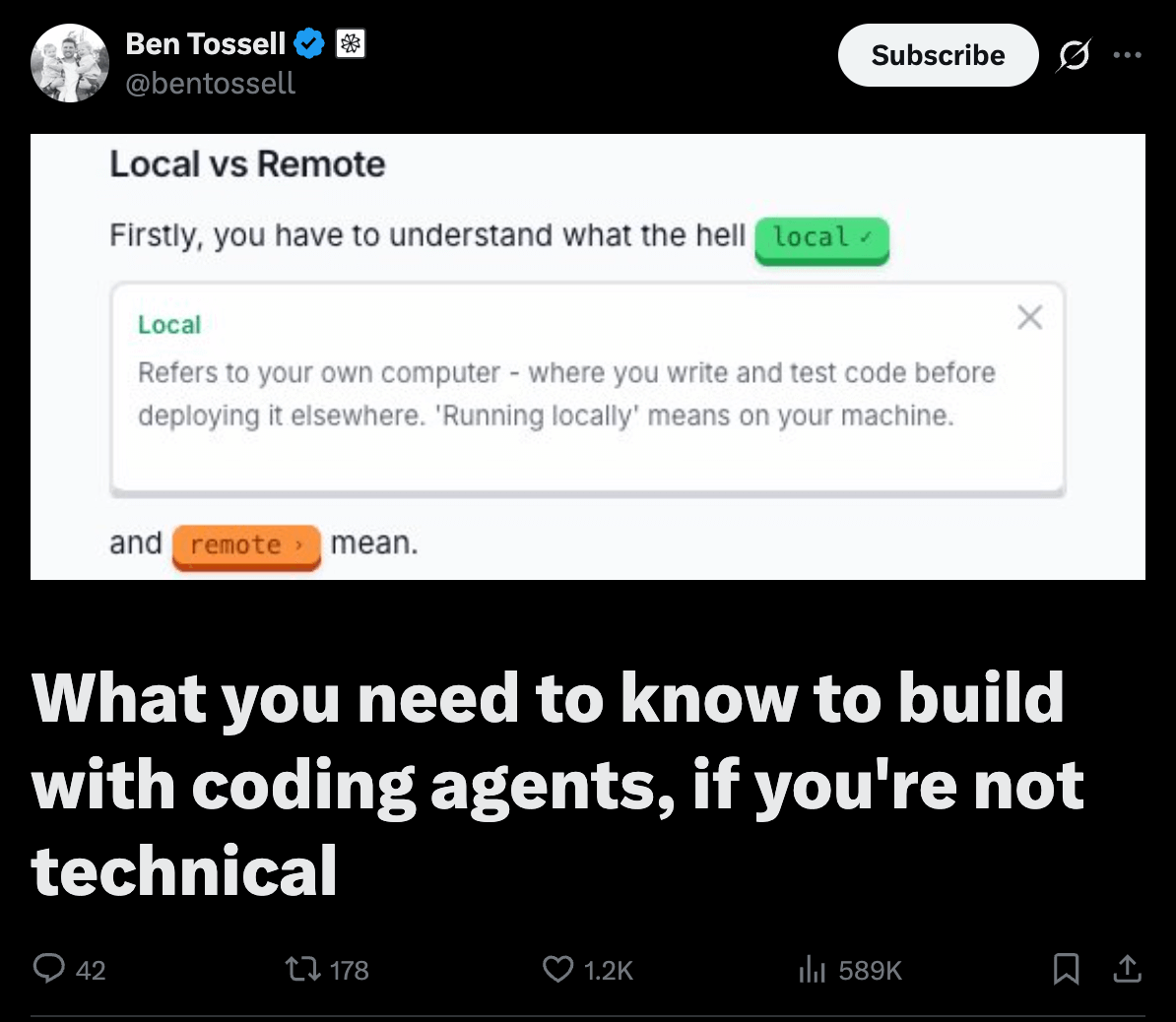 Most people still think AI = ChatGPT. If they do see one of these vibe coding demos, it’s like a video of someone doing a backflip — cool to see, but not something they’re going to try at home.