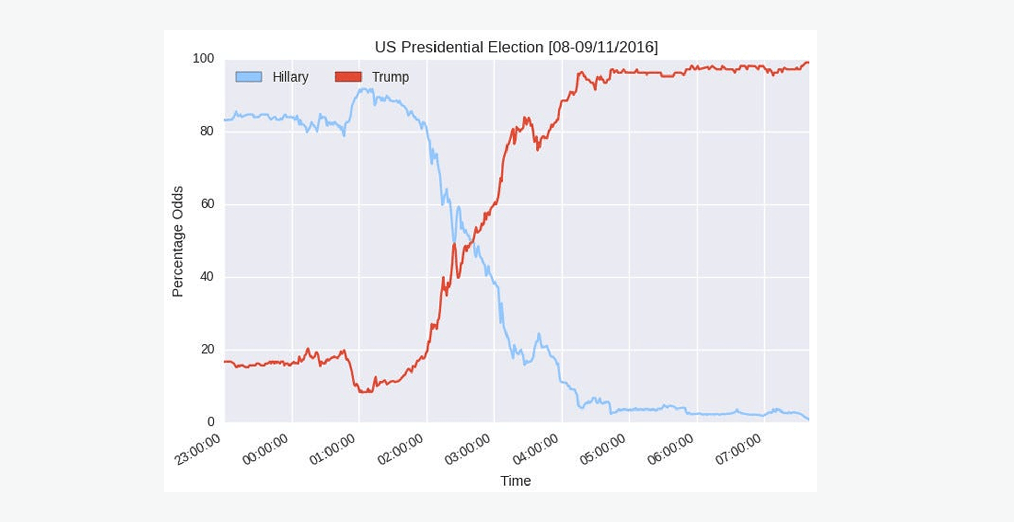 In the mid-2010s, a new visual content format started popping up around elections, sports games and playoff races: the “probabilities changing over time” graph. These graphs were a compelling content format because they told a fascinating story: what was supposed to happen, and then what did.