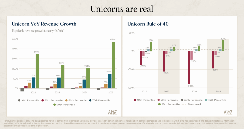 It’s a power law business; always has been. In 2025, Revenue growth exploded upwards for the top quartile and top decile companies, far more than for everybody else.