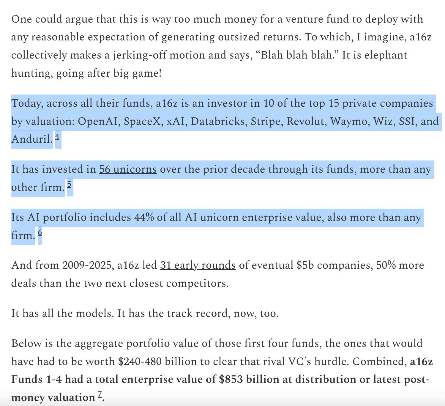 Roelof is one of the all-time great investors, and he’s also a great guy. But I disagree with his claims here. (And it’s worth noting, of course, that Sequoia has scaled too: it’s one of the largest VC firms in the world.)