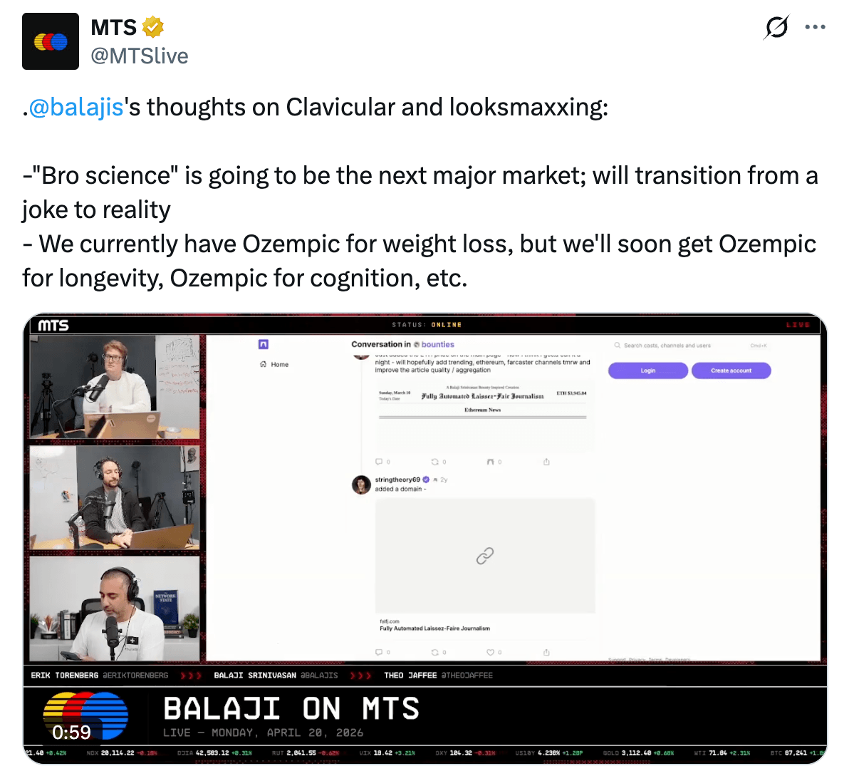 News now exists to summarize things that have already happened online. Politicians communicate with the public directly, or in conversations with internet personalities. Stories originate on internet platforms, where the underlying details can be viewed in full without the selective editing and spin of a traditional media outlet. And entire discourse cycles in the legacy media are dedicated to memetic phenomena, such as the now multi-month looksmaxxing saga–most recently featured on 60 Minutes.