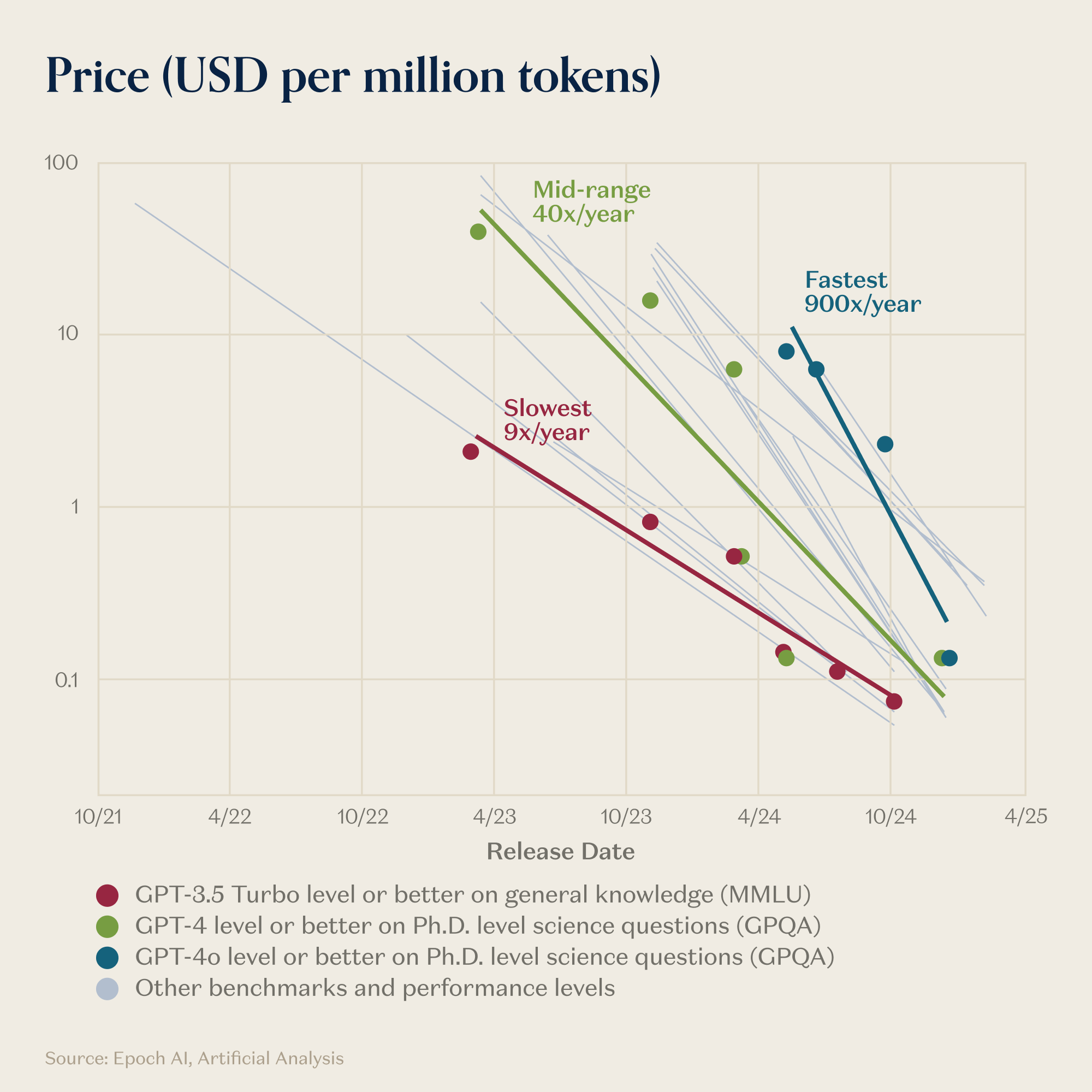 And then there are other kinds of services that are not going to be Jevons’ed, for some reason or another, and for those services, over time, we should expect to see wildly high prices for specific services that have no real reason to AI whatsoever. Your dog walker has nothing to do with AI infrastructure; and yet, he will cost more. But you’ll pay it anyway; if you love your dog.