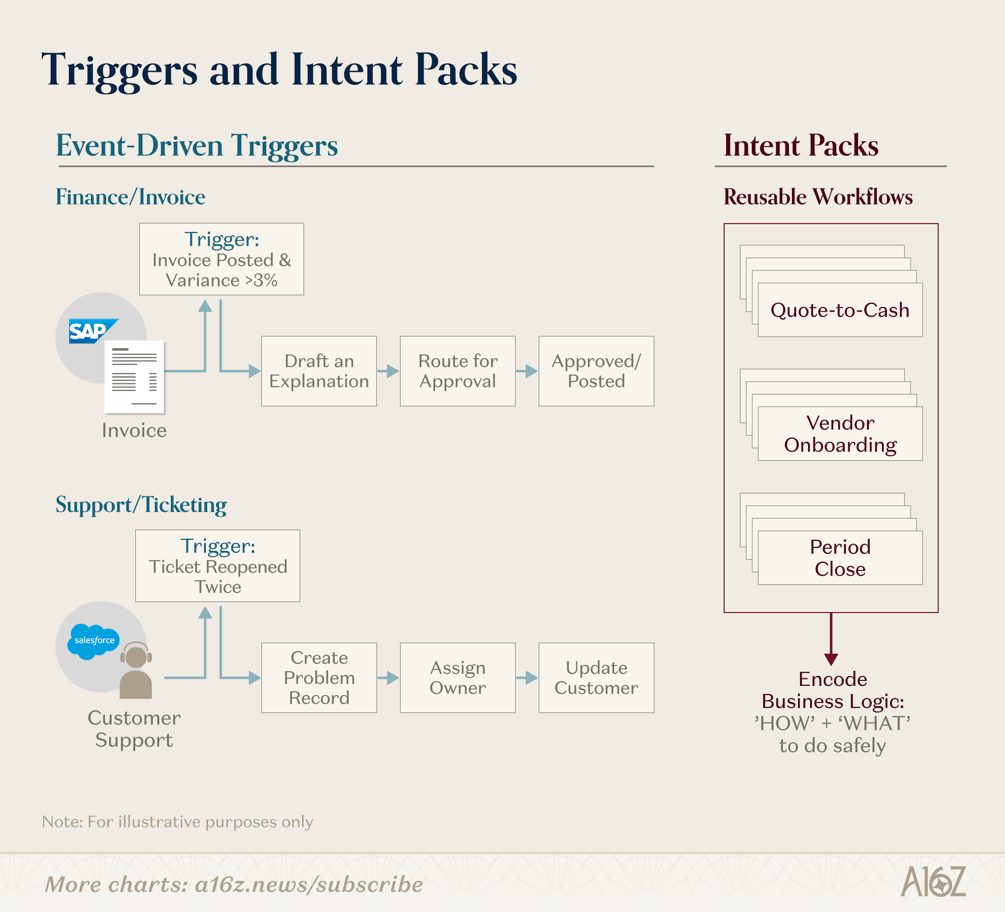 These extensions also unlock cross-system workflows and automations that no single vendor would ever prioritize: event-driven triggers like “if invoice posted AND variance >3% → draft an explanation → route for approval,” or “if ticket reopened twice → create problem record → assign owner → update customer,” with human-in-the-loop checkpoints where it matters. Over time, the most valuable deployments turn into reusable “intent packs” — quote-to-cash, vendor onboarding, period close — that encode not just what to do, but how to do it safely in your environment.