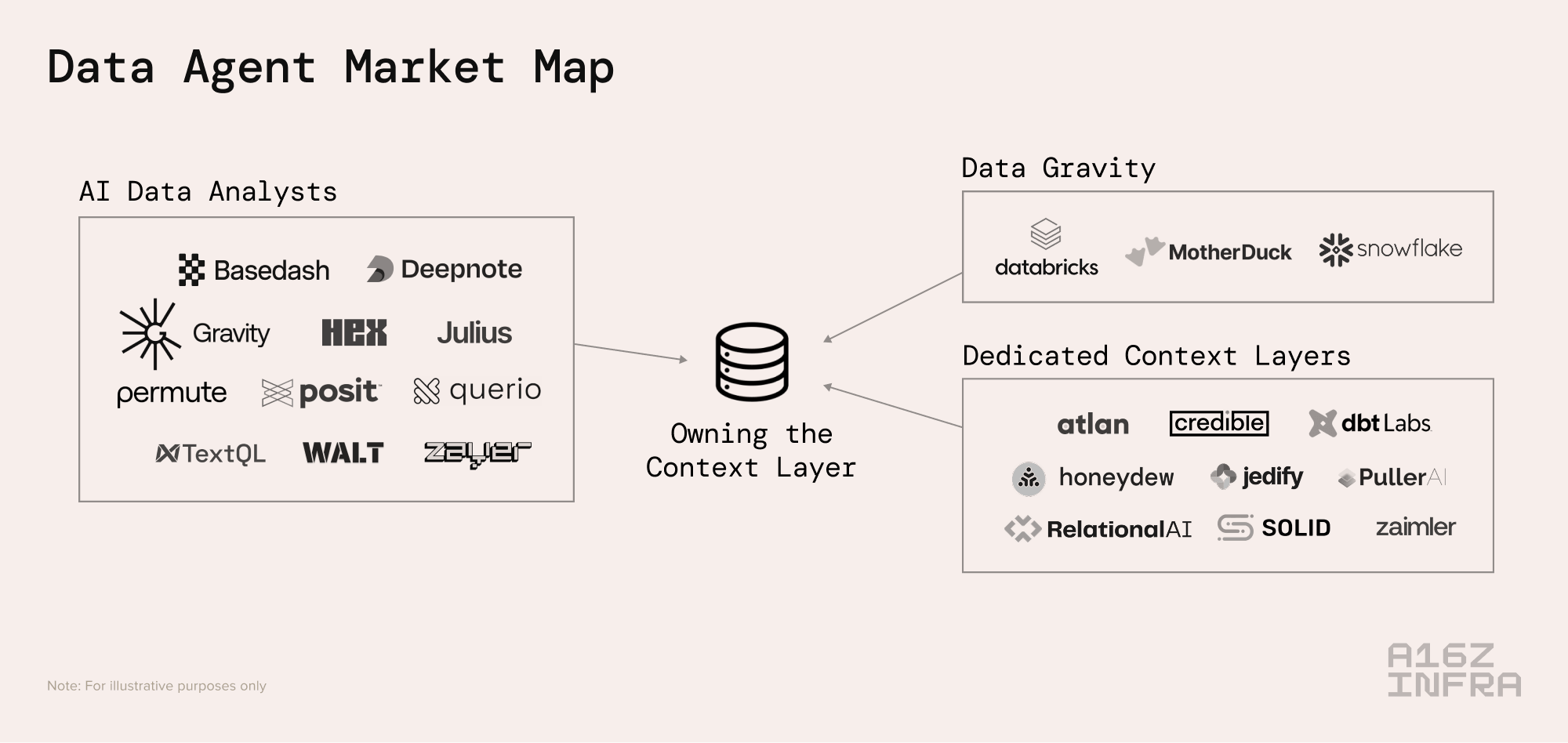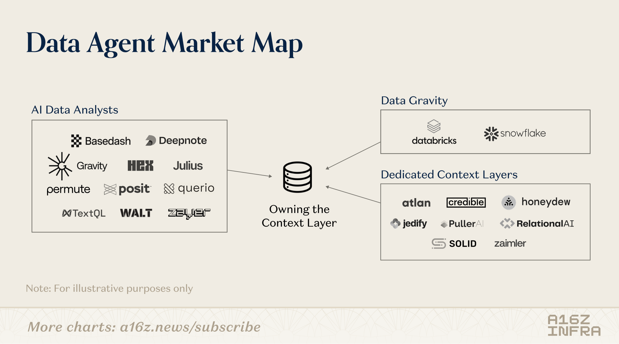 Existing “AI data analyst companies” – there’s a wave of companies that have already emerged utilizing AI to allow customers to chat with your data. Many have realized through time in market that the key to effective data agents is actually building the relevant context layer. As a result, some have evolved to encompass data context construction as a key part of their products.