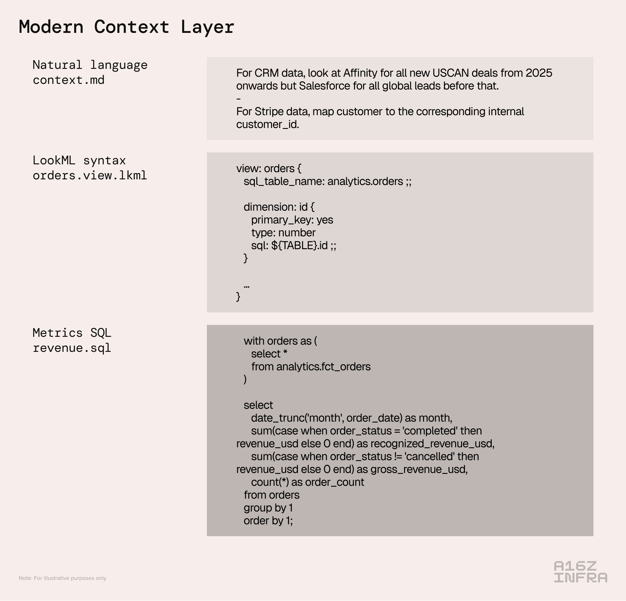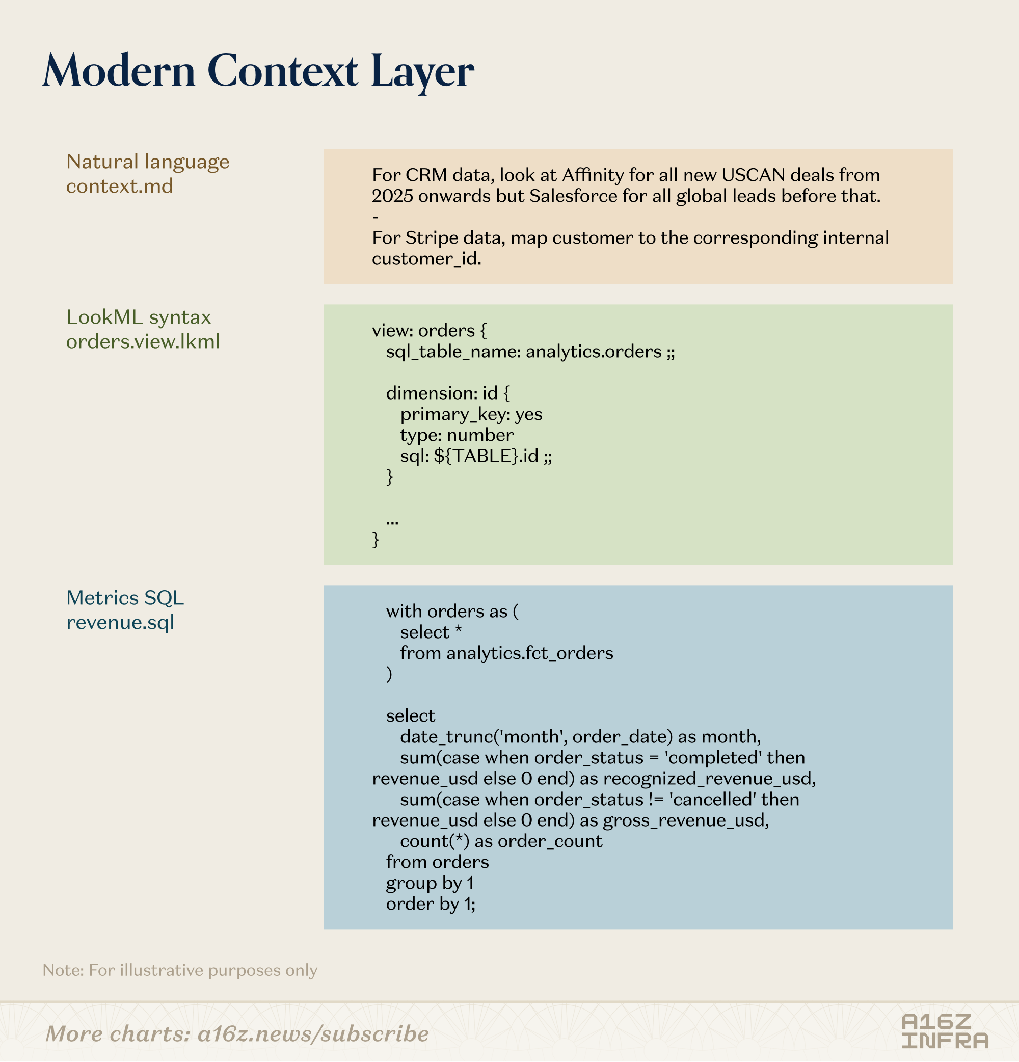 In this way the context layer can become a multi-dimensional corpus where code lives alongside natural language, capturing any context an agent might need. Just like developers can set up .cursorrules files to guide agents and control output behavior, data practitioners can maintain rules and guidelines.